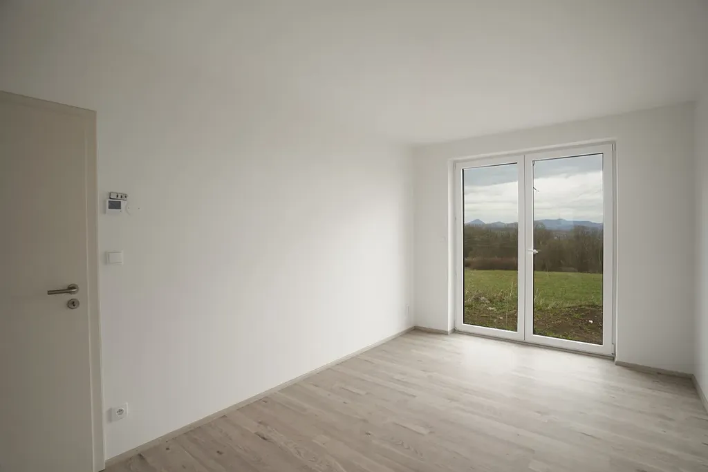 Dispozice domu - vstupní chodba, technická místnost, obývací pokoj je spojen s kuchyní a má vstup francouzskými dveřmi na zahradu, koupelna má sprchový kout i vanu, samostatné WC, neprůchozí 2 ložnice, hlavní ložnice má prostornou šatnu a francouzské dveře se vstupem na zahradu. Je zde také prostorná půda, kterou lze využívat jako úložný prostor. Všechny hlavní místnosti směřují na terasu s krásným výhledem do přírody.