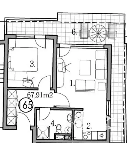 – Dispozice: obývací pokoj s kuchyňským koutem, ložnice, koupelna s toaletou, terasa