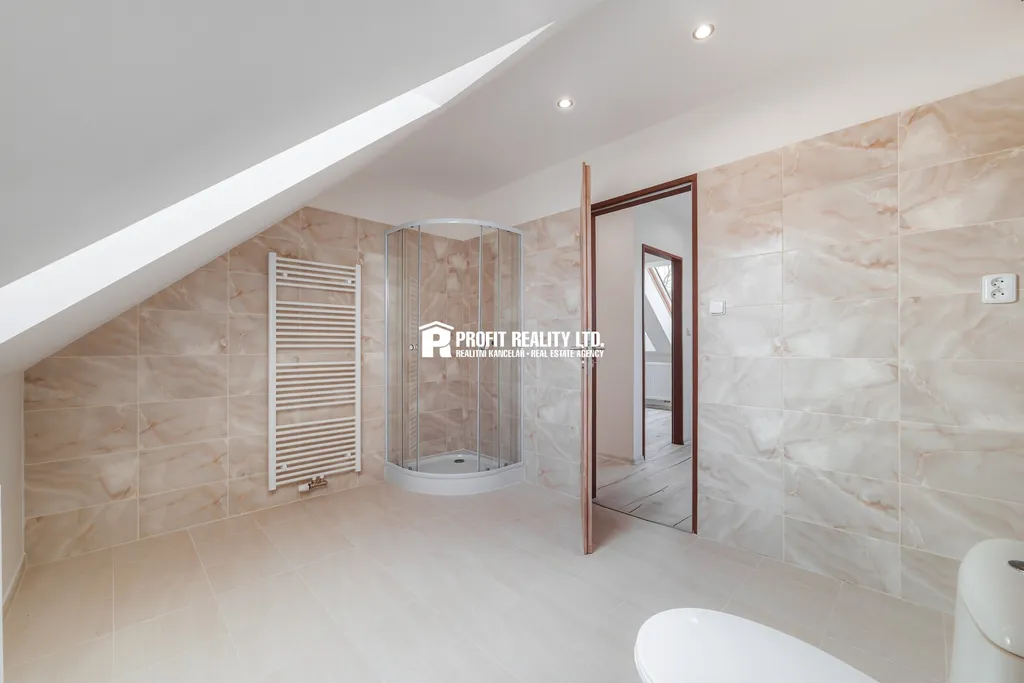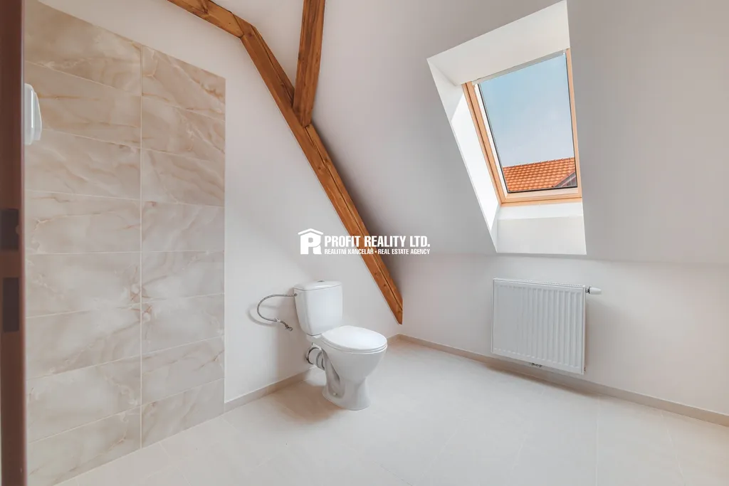 Zprostředkujeme vám prodej rodinného domu ve městě Mirovice, umístěného v klidné ulici Husova, poblíž historického náměstí. Objekt prošel kompletní rekonstrukcí, jen krovy a střešní krytina mají staří 11 let. Dům je z malé části podsklepený. V přízemí se nachází vstupní předsíň, pokoj s přípravou na kuchyňskou linku, obývací pokoj, koupelna s vanou, samostatná toaleta a technická místnost a kotelna. Podlahová plocha přízemí činí 79 m2. V rámci rekonstrukce jsou zde nové podlahy, izolace, podlahová krytina, dlažby, rozvody vody, elektřiny, odpady, plynové topení včetně nové přípojky a kotle, koupelna, příprava pro kuch. linku, okna, dveře, nové stropní trámy, sádrokartonové podhledy + izolace. Nová pojistková skříň. Z předsíně se po schodišti dostanete do podkroví, které se skládá z dvou ložnic se střešními okny, koupelny se sprchovým koutem a toaletou a předsíně, kde lze vybudovat menší kuchyňskou linku. Při rekonstrukci byla zhotovena nová dvojitá skladba podlahy, izolace v předstěnách, zateplení střechy, zateplení štítů, nové rozvody vody, elektřiny, topení, příprava pro malou kuch. linku, nové podlahoviny, sádrokartonové systémy, nová střešní okna dřevěná Velux. Nová pojistková skříň. Zahrada je za domem, s věcným břemenem chůze a jízdy pro vstup na zahradu, z domu je přístupná z obývacího pokoje francouzskými dveřmi. Ve městě Mirovice je kompletní občanská vybavenost.