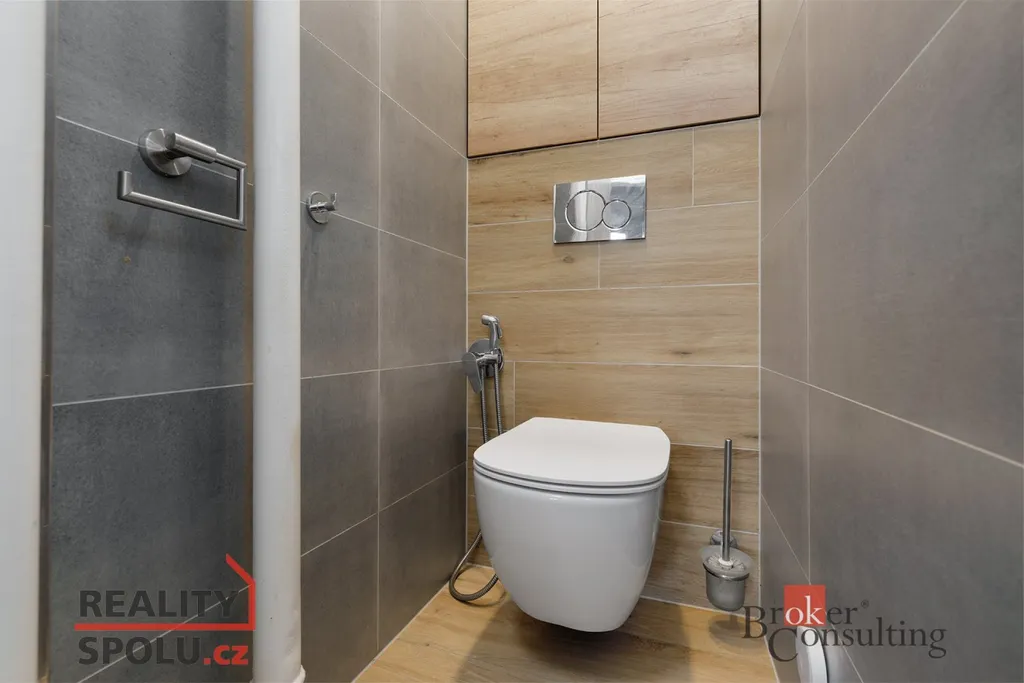 Koupelna a toaleta v moderním provedení s kvalitními materiály.