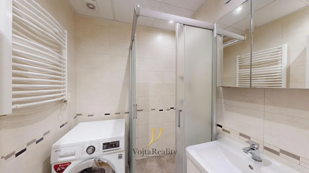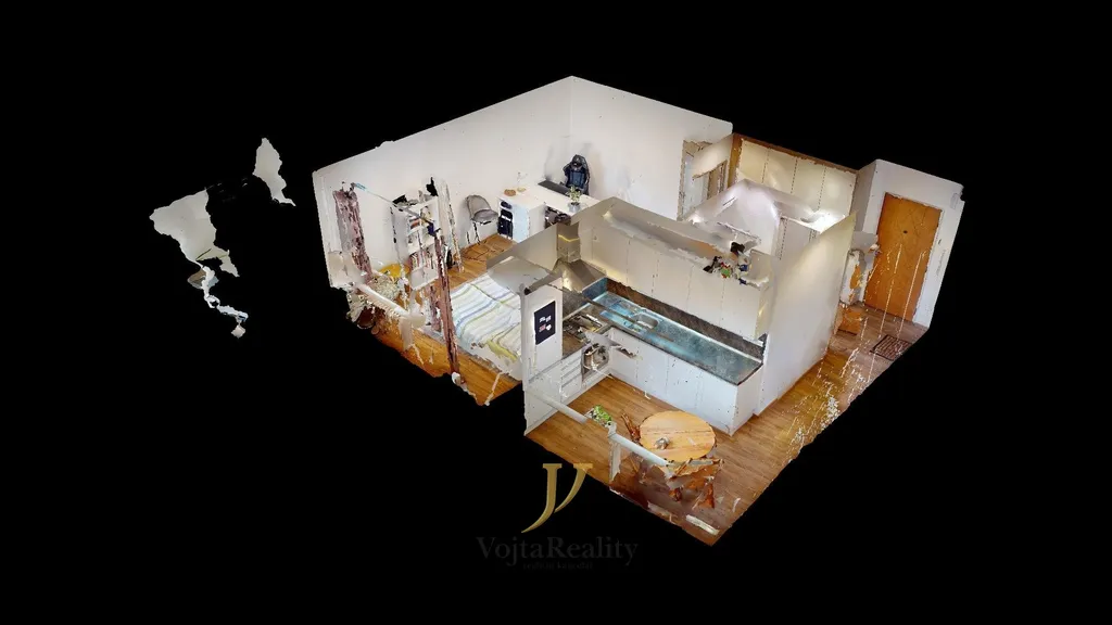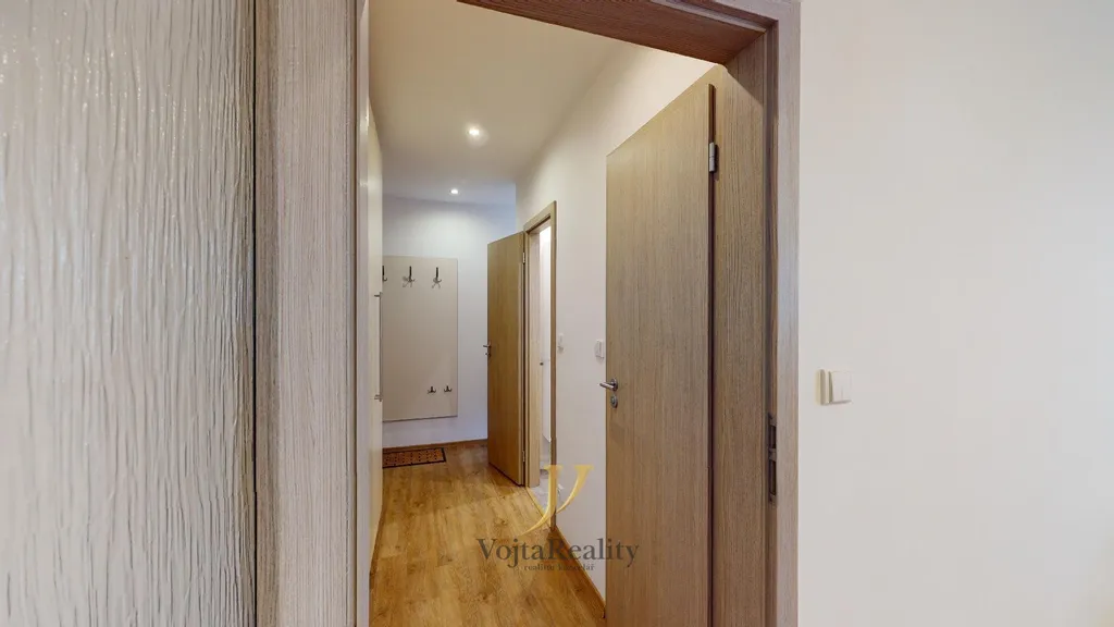 Byt, který byl zrekonstruován v roce 2018 se nachází ve 2. NP (1.patro) a je situován do klidného vnitrobloku. Dispozice bytu nabízí vstupní předsíň, která obepíná zděné bytové jádro, kdy z předsíně vpravo se nachází hlavní obytná místnost, následně z předsíň ústí do kuchyně. Kuchyň je vybavena vestavěnými spotřebiči a policovými skříněmi. Koupelna disponuje vestavěným sprchovým koutem a automatickou pračkou, WC se nachází v oddělené místnosti. Hlavní obývací místnost se pronajímá nevybavená.