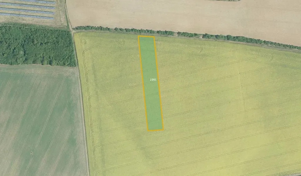Konkrétně pod číslem parcely 1991 je zapsán pozemek o celkové výměře 5 397 m², z toho k prodeji připadá vlastnictví 4 183 m²