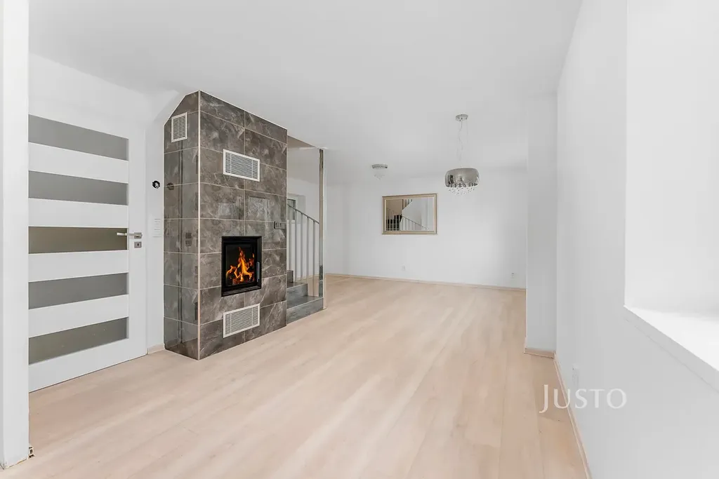 - v 1. NP je předsíň, koupelna se sprchovým koutem a WC, obývací pokoj s kuchyňským koutem a krbem, užitná plocha 1.NP je 37,21 m²