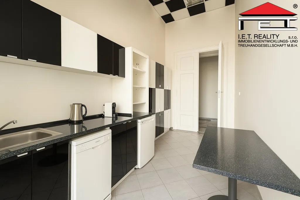 K dispozici je sdílená kuchyňka, která je využívána jen několika dalšími kancelářemi, takže poskytuje komfortní zázemí bez velkého provozu. Kancelář je volná ihned.