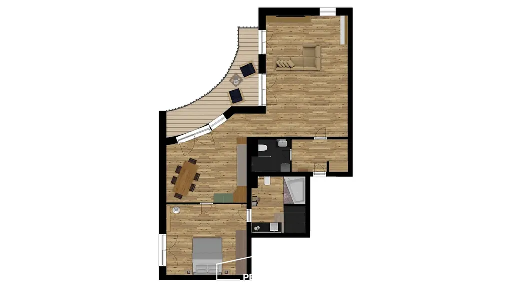 Ojedinělý a atypický byt o podlahové ploše 104,1m2 a s terasou 13m2, který Vám nabízíme se nachází v 2. NP, původně spojený ze dvou bytů 2 + kk. Podlahové vytápění, 2 koupelny samozřejmostí.
