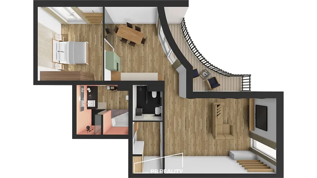 V případě pro rodinné využití či pocitu malého komfortu kvůli jedné ložnici, lze provést stavební úprava, rozdělení místnoti v obývacím pokoji na 3 + kk. Uvedeno pouze informativně, není součástí ceny. Dokážeme v rámci naší stavební firmy zrealizovat