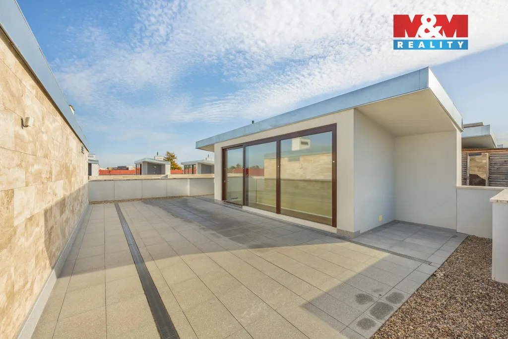 Nabízíme naprosto výjimečný řadový rodinný dům ve velmi vyhledávané části Prahy – Libuši. Tato novostavba nabízí čtyři nadzemní podlaží s celou užitnou plochou 279m². Moderní a prostorný interiér zahrnuje sedm místností a čtyři koupelny s toaletou. Dům je postaven z prémiových materiálů a je vybaven vestavěnými skříněmi, centrálním vytápěním, bezpečnostním systémem, přípravou pro venkovní elektrické žaluzie. K dispozici jsou dvě terasy – prostorná střešní terasa o ploše 84 m² a další terasa v prvním patře o velikosti 38 m² odstíněná od sousedních teras. Zahrada za domem má rozlohu 96 m², předzahrádka před domem má pak 32 m². Fasáda celého domu je obložena kamenným obkladem z travertinu. Dvě podzemní garážová stání zajišťují komfortní parkování a vstup z garáže přímo do domu. Nemovitost se nachází v klidné části uzavřeného areálu hned vedle budoucí stanice metra C a je připravena k okamžitému nastěhování. Nepropásněte tuto jedinečnou příležitost. Energetický štítek B.
