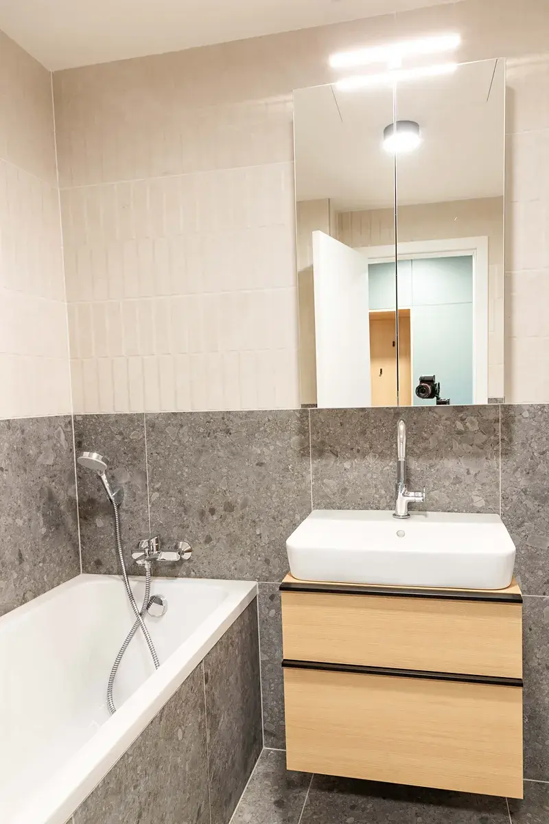 Právě jste našli moderní, stylové a centru dostupné bydlení, které je ihned k dispozici v rezidenci Pekárenský dvůr na adrese Bratislavská 82, Brno. Kvalitní materiály a harmonicky sladěné barvy vytvářejí příjemný interiér, vše bylo navrženo bytovým designérem. K bytu náleží balkon, sklepní kóje a možnost garážového stání s přímým přístupem výtahem – ideální volba pro každého, kdo hledá pohodlí i kvalitu pro své bydlení.