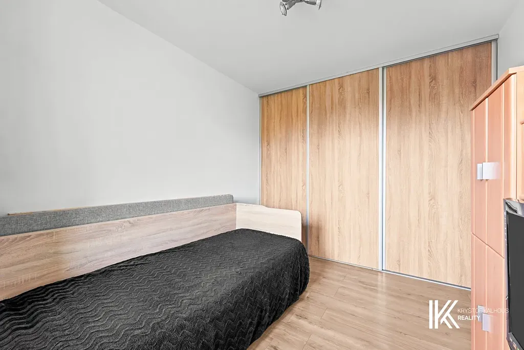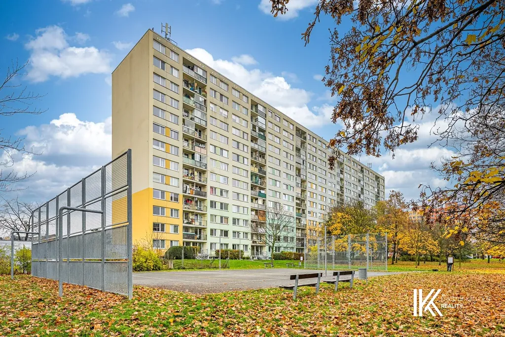 Byt je orientovaný na západ do klidného vnitrobloku. Obývací pokoj s kuchyňským koutem nabízí příjemný, funkčně členěný prostor. Kuchyň je praktická, se dvěma částmi linky, vestavěnými spotřebiči (sklokeramická varná deska, trouba, digestoř, myčka) a dostatkem úložných míst. Menší z pokojů pojme vše potřebné – postel, noční stolek i malou skříň. Druhý pokoj je větší a flexibilní, vhodný jako dětský pokoj, pracovna či pokoj pro hosty; z něj je vstup na lodžii, která bude navíc v roce 2026 kompletně zasklena. Koupelna je moderní se sprchovým koutem a pračkou; toaleta je samostatná a má bidetovou spršku. Byt má také praktickou vstupní předsíň, kde se nachází vestavěná skříň a je zde prostor na botník i věšáky. Další úložné prostory pak nabízí sklepní kóje o velikosti cca 2 m² v suterénu domu, která je součástí jednotky.