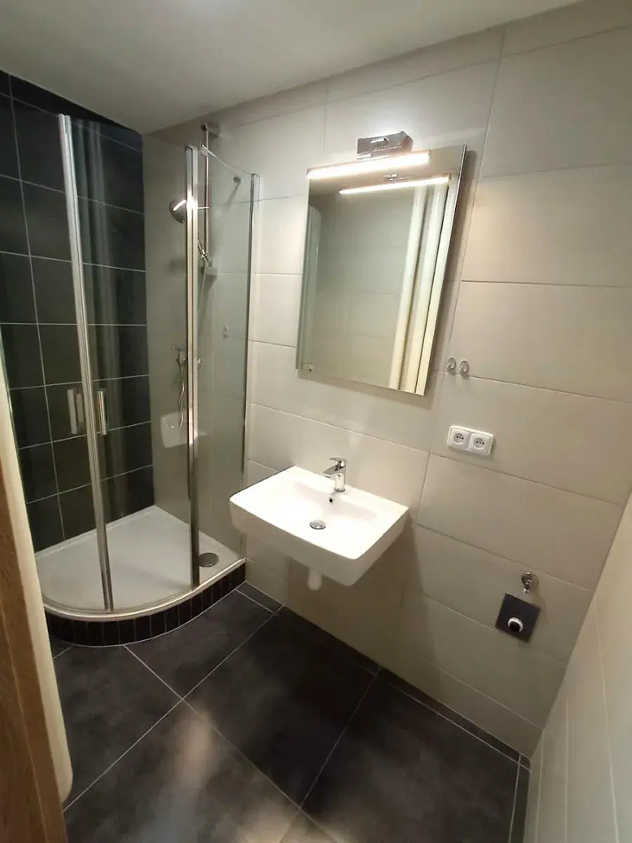 V kuchyni je kuchyňská linka s elektrickými kamny, varnou deskou a digestoří. V koupelně je sprchová kout a umyvadlo, WC je odděleno. Místnosti jsou světlé a prostorné. K bytu náleží sklep.