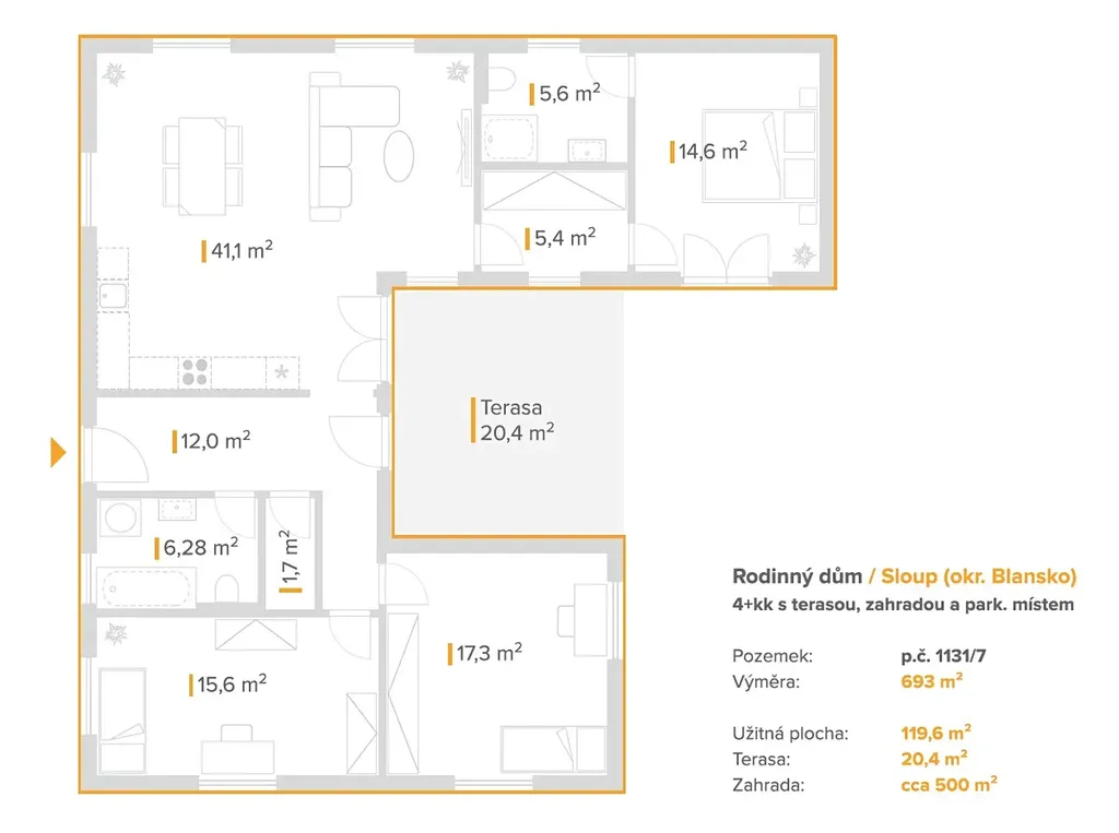 Rodinný dům 4+kk s užitnou plochou 120 m², terasou 20 m², zahradou a parkováním pro 2 vozidla splňuje požadavky dnešních rodin – pohodlí, funkčnost, prostor, bezpečí i nízké provozní náklady.