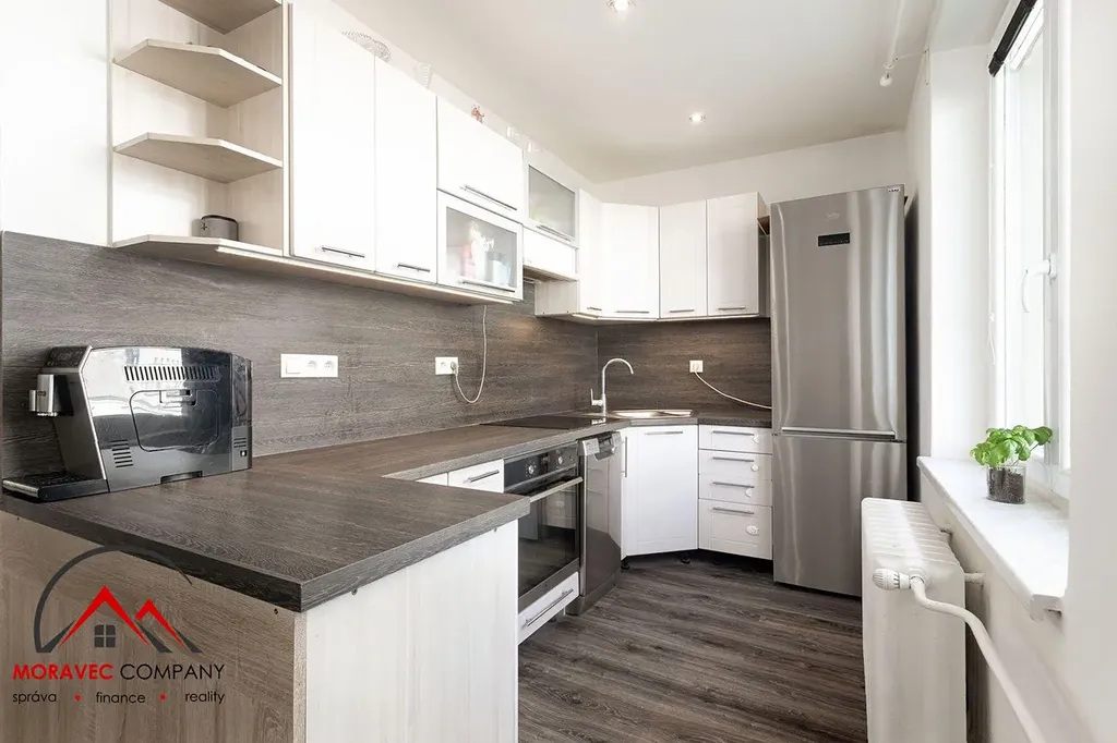 Byt je po celkové rekonstrukci zřízen v moderním stylu. V koupelně je vana, WC je samostatné. Vybavení kuchyně zahrnuje elektrickou troubu, indukční varnou desku a zabudovanou myčku.