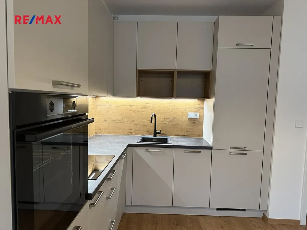 Interiér bytu je řešen moderní kuchyňskou linkou značky Gorenje vybavenou vestavnou troubou, indukční deskou, ledničkou s mrazákem, myčkou nádobí, klasickým dřezem a digestoří. Dispozice bytu je funkční a nabízí dostatek úložného prostoru, což vytváří vzdušnou a příjemnou atmosféru. V předsíni a ložnici vestavěné skříně, v koupelně automatická pračka (instalace začátek ledna 2026).
