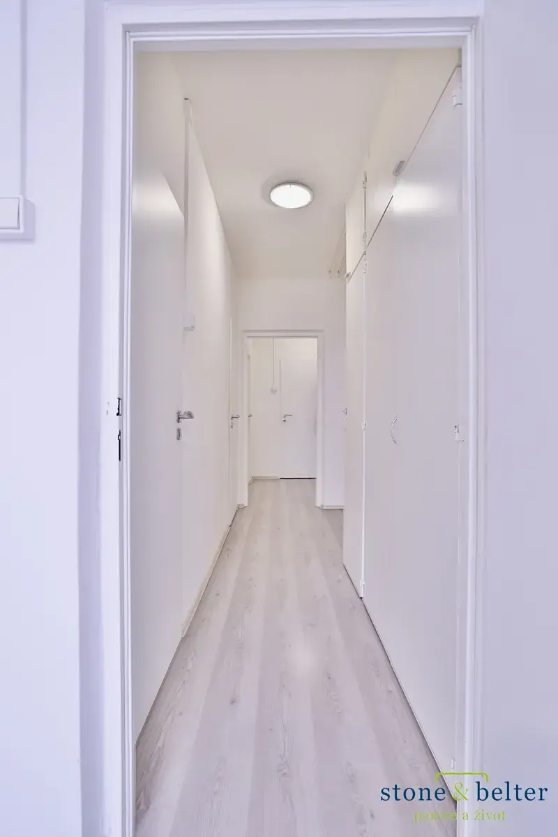 Dispozice zahrnuje tři samostatné NEPRŮCHOZÍ pokoje, kuchyň s jídelním koutem, prostornou chodbu s vestavnými skříněmi, koupelnu s vanou a samostatné WC.