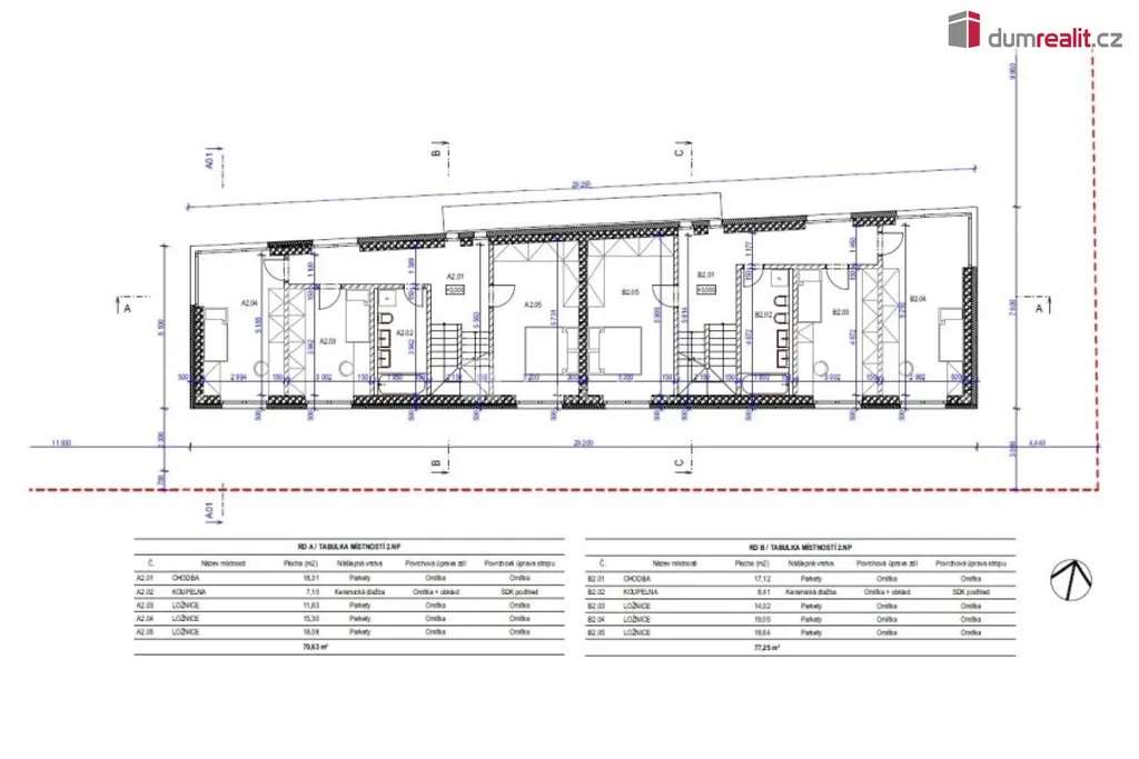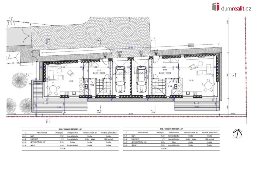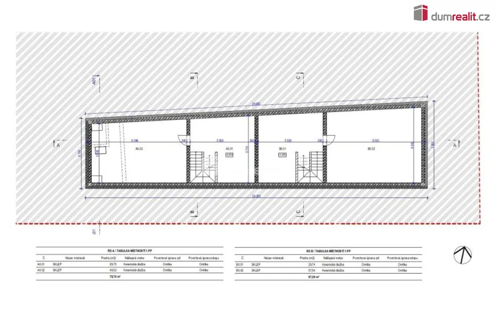 Dumrealit.cz Vám zprostředkuje koupi rovinatého stavebního pozemku plochy 909m² určeného pro výstavbu dvojdomu o užitné ploše 333,5m², se sklepními prostory 166,1m² a střešními terasami plochy 102,2m². Pozemek je obdélníkového tvaru s plánovaným vjezdem z ulice Davídkova, Praha 8. Nachází se na kopci v místě, kde svah pozvolna přechází do roviny. Na výstavbu dvojdomu již bylo v roce 2025 vydáno územní rozhodnutí. Směrově je situován zejména na jih a sever. Dům "A" má užitnou plochu 159,0m², plus sklepní prostory 78,8m² a střešní terasy 47,7m². Dům "B" má užitnou plochu 174,5m², plus sklepní prostory 87,3m² a střešní terasy 54,5m². Jedná se vždy o dvě obytná nadzemní podlaží a střešní ateliér se dvěma terasami pro každý dům. V 1. NP se nachází hala, koupelna a obývací pokoj s kuchyňským koutem, dále garáž. Ve 2. NP se nachází tři ložnice a prostornější koupelna. Ve 3. NP se nachází střešní ateliér se vstupy na dvě terasy, z nichž bude krásný výhled na Prahu. V celé ploše půdorysu domu je podzemní podlaží s výškou stropu 2,55m se širokým potenciálem využití na kanceláře, skladové prostory, tělocvičnu, posilovnu, herny apod..