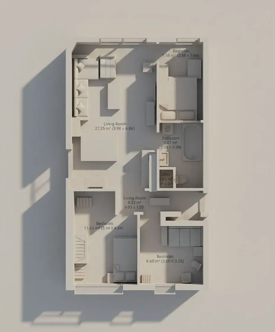 Byt je díky své orientaci a chytře řešené dispozici velmi světlý, vzdušný a působí větším dojmem, než napovídá jeho metráž.