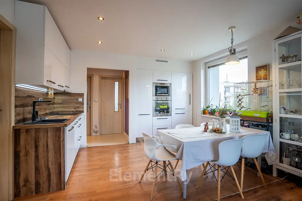 Byt tak nabízí dobrý technický základ, funkční řešení úložných prostor a příjemné prostředí pro pohodlné bydlení. Dispozice 4+KK je chytře a dobře využita, takže poskytuje pohodlný prostor pro rodinu i možnost pracovat z domova, i přesto, že byt má 65m². K bytu navíc patří vlastní sklep a obyvatelé domu mohou využívat další společné prostory, včetně samostatné kolárny.