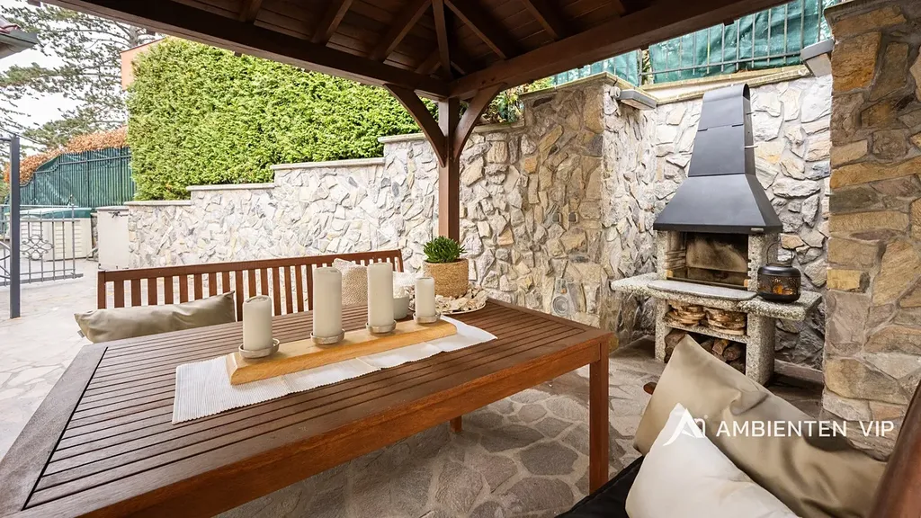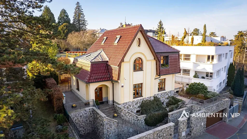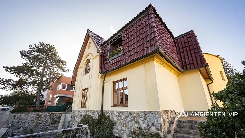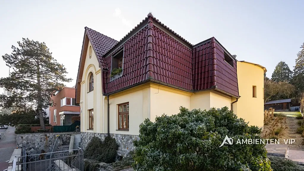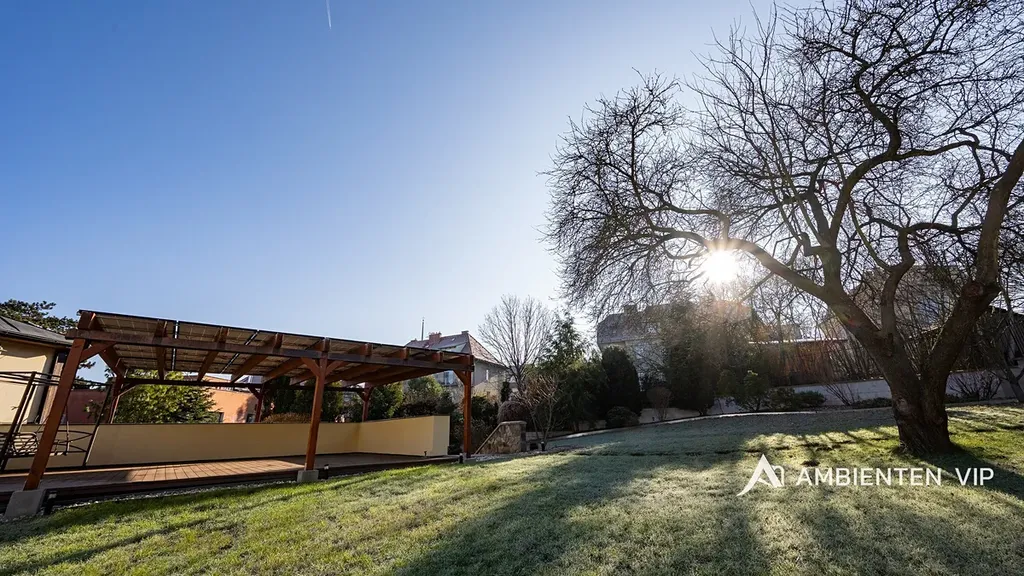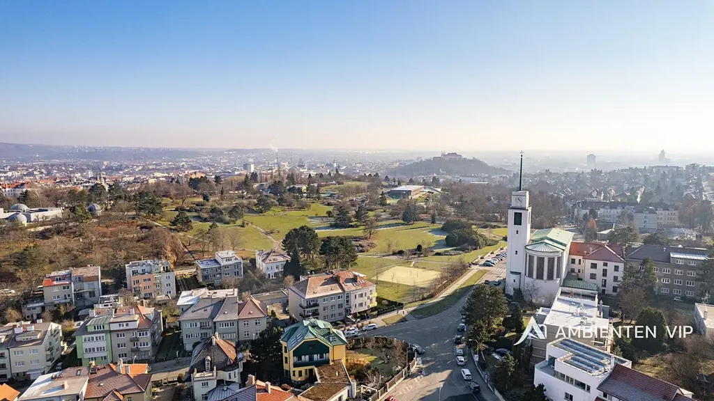Pokud hledáte samostatně stojící vilu v nejlukrativnější městské části ihned k nastěhování, tak tako vila je určena právě vám. Nachází se v bezprostřední blízkosti Kraví Hory v lokalitě, kde je perfektní dopravní obslužnost, nádherné parky, Wilsonův les, brněnské Planetárium, koupaliště, restaurace, kavárny, základní škola, mateřská škola, sportoviště. Vila je vybavena moderními technologiemi, je v perfektním technickém stavu bez nutnosti investic. Nadchne vás nejen svým umístěním, ale i perfektním provedením stavby, nad jehož realizací osobně dohlížel sám majitel, ale i precizností jakou byla provedena. Jsou zde použity nadstandardní materiály a v posledních letech byly zainvestovány velké finanční prostředky do FV elektrárny, chytré domácnosti, kamerového systému, v garáži je možné nabíjet dvě auta. Užitná plocha vč. teras a pakování před domem 754 m2, zastavěná plocha 339 m2, zahrada 984 m2, pozemek 1 323 m2. Nemovitost je o dispozici 6+kk s garáží pro dva vozy, která je průchozí do domu přes fitness, které lze také využít jako prostorný sklep na uskladnění vín. Dále je v suterénu vily technické zázemí, kde je kotelna s dvěma kotly. Vstupní 1. NP patro vily vás nadchne svojí honosností a vzdušností, kde je otevřená dispozice kuchyně, jídelny a obývacího pokoje s krbem, dále wellness zóna s bazénem, saunu a technické zázemí k nim. Dále samostatná toaleta a koupelna se sprchou a umyvadlem. Z tohoto patra máte přímý výstup do zahrady a na terasu vily. Ve 2. NP vily jsou celkem tři ložnice, prostorná koupelna s vanou, toaletou, umyvadly, samostatná šatna. Z hlavní ložnice vstupujete na terasu a do zahrady. Ve 3. NP je pracovna, pokoj pro hosty a koupelna se sprchou, umyvadlem a toaletou. Kompletní přestavba vily proběhla v letech 2002-2007. Okna vily jsou trojskla z exotického dřeva Meranti, mají vnitřní žaluzie a ložnice do zahrady má navíc venkovní žaluzii. Střešní okna jsou od firmy Velux s elektrickými žaluziemi. Podlahy ve vile jsou dubové v 1. NP vily a ve 2. NP vily plovoucí dřevěné. Technologické vybavení vily je systém inteligentní domácnosti, kamery, zabezpečovací systém, centrální vysavač a bazén je celý osvětlený s protiproudem. Kuchyňská linka a ostatní nábytek v domě byl realizován dle přání majitele na zakázku, vč. osvětlení a výmaleb. Kuchyně je vybavena spotřebiči Miele (elektrickou troubou, myčkou, konvektomatem, indukcí, ledničkou s mrazákem, vestavným kávovarem). Nemovitost má 4 zdroje vytápění. Lze topit krbem, plynovým kotlem, tepelným čerpadlem Wolf a klimatizací). V r. 2024 byla instalována fotovoltaická elektrárna Sunways o výkonu 12 kW (s 29 panely a úložištěm). Solární energií je vytápěn také podsvícený bazén (7,3 x 3,6 m) s protiproudem, automatickou filtrací a roletou. Dvůr s venkovním posezením, pergolou a krbem poskytuje absolutní soukromí. V rámci zahrady je umístěn zahradní domek s toaletou. Zahradu je zavlažována automatickým závlahovým systémem. Nemovitost je kompletně oplocena ploty z pozinku od uměleckého kováře. Doporučujeme vám prohlídku této skvostné vily.