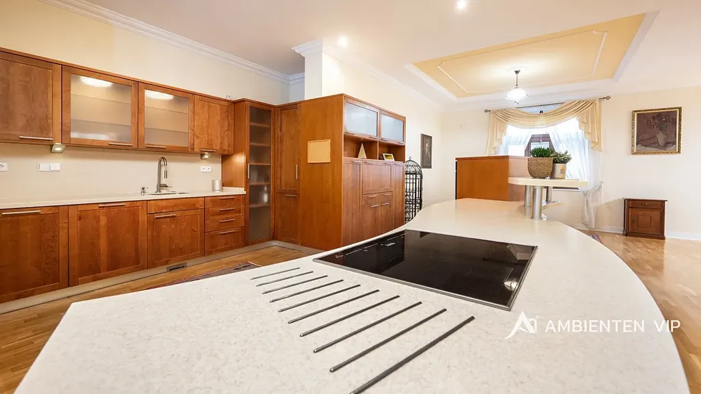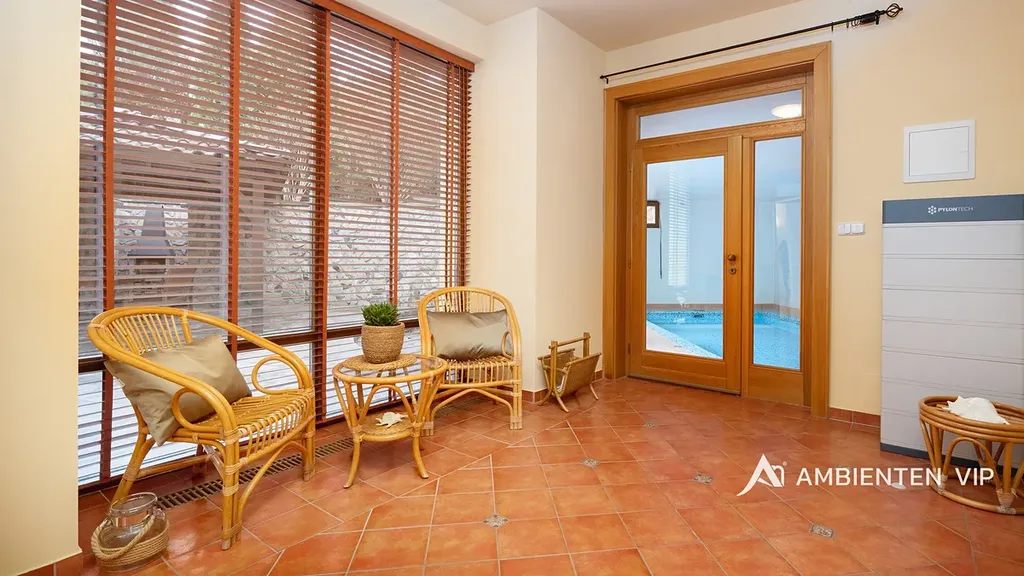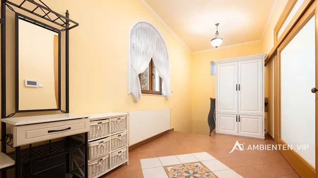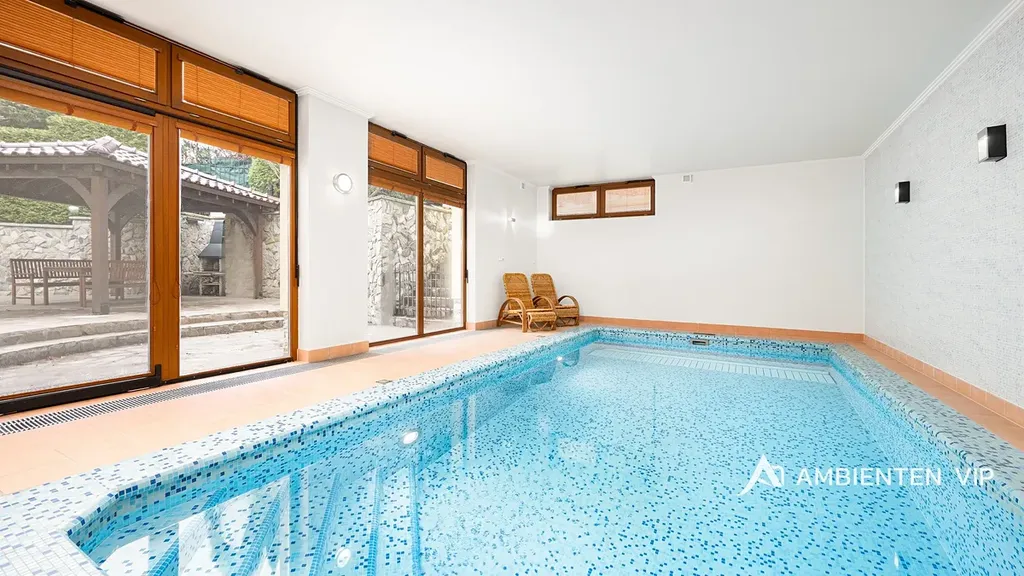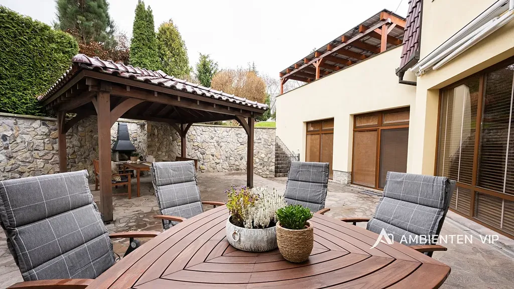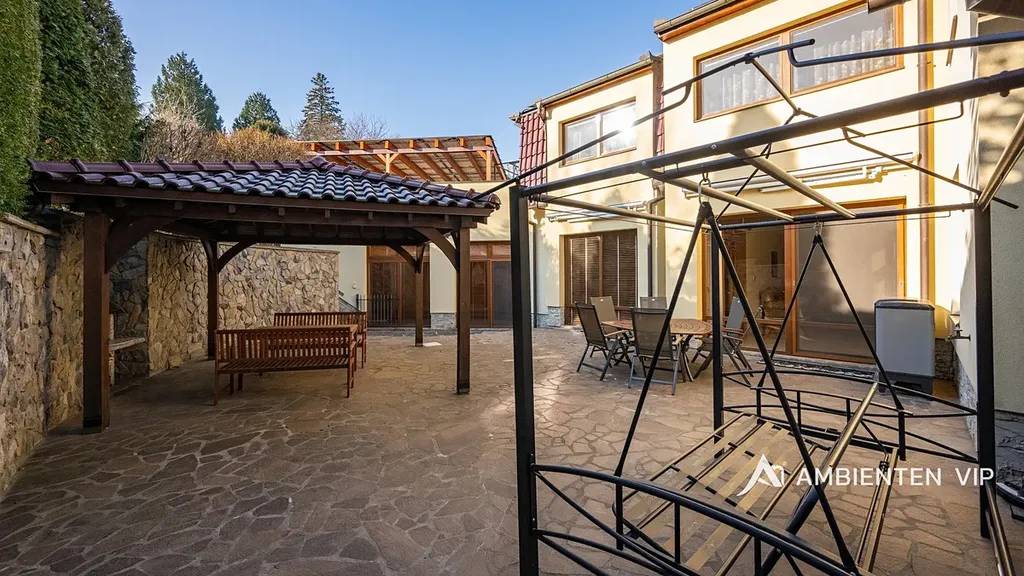 Pokud hledáte samostatně stojící vilu v nejlukrativnější městské části ihned k nastěhování, tak tako vila je určena právě vám. Nachází se v bezprostřední blízkosti Kraví Hory v lokalitě, kde je perfektní dopravní obslužnost, nádherné parky, Wilsonův les, brněnské Planetárium, koupaliště, restaurace, kavárny, základní škola, mateřská škola, sportoviště. Vila je vybavena moderními technologiemi, je v perfektním technickém stavu bez nutnosti investic. Nadchne vás nejen svým umístěním, ale i perfektním provedením stavby, nad jehož realizací osobně dohlížel sám majitel, ale i precizností jakou byla provedena. Jsou zde použity nadstandardní materiály a v posledních letech byly zainvestovány velké finanční prostředky do FV elektrárny, chytré domácnosti, kamerového systému, v garáži je možné nabíjet dvě auta. Užitná plocha vč. teras a pakování před domem 754 m2, zastavěná plocha 339 m2, zahrada 984 m2, pozemek 1 323 m2. Nemovitost je o dispozici 6+kk s garáží pro dva vozy, která je průchozí do domu přes fitness, které lze také využít jako prostorný sklep na uskladnění vín. Dále je v suterénu vily technické zázemí, kde je kotelna s dvěma kotly. Vstupní 1. NP patro vily vás nadchne svojí honosností a vzdušností, kde je otevřená dispozice kuchyně, jídelny a obývacího pokoje s krbem, dále wellness zóna s bazénem, saunu a technické zázemí k nim. Dále samostatná toaleta a koupelna se sprchou a umyvadlem. Z tohoto patra máte přímý výstup do zahrady a na terasu vily. Ve 2. NP vily jsou celkem tři ložnice, prostorná koupelna s vanou, toaletou, umyvadly, samostatná šatna. Z hlavní ložnice vstupujete na terasu a do zahrady. Ve 3. NP je pracovna, pokoj pro hosty a koupelna se sprchou, umyvadlem a toaletou. Kompletní přestavba vily proběhla v letech 2002-2007. Okna vily jsou trojskla z exotického dřeva Meranti, mají vnitřní žaluzie a ložnice do zahrady má navíc venkovní žaluzii. Střešní okna jsou od firmy Velux s elektrickými žaluziemi. Podlahy ve vile jsou dubové v 1. NP vily a ve 2. NP vily plovoucí dřevěné. Technologické vybavení vily je systém inteligentní domácnosti, kamery, zabezpečovací systém, centrální vysavač a bazén je celý osvětlený s protiproudem. Kuchyňská linka a ostatní nábytek v domě byl realizován dle přání majitele na zakázku, vč. osvětlení a výmaleb. Kuchyně je vybavena spotřebiči Miele (elektrickou troubou, myčkou, konvektomatem, indukcí, ledničkou s mrazákem, vestavným kávovarem). Nemovitost má 4 zdroje vytápění. Lze topit krbem, plynovým kotlem, tepelným čerpadlem Wolf a klimatizací). V r. 2024 byla instalována fotovoltaická elektrárna Sunways o výkonu 12 kW (s 29 panely a úložištěm). Solární energií je vytápěn také podsvícený bazén (7,3 x 3,6 m) s protiproudem, automatickou filtrací a roletou. Dvůr s venkovním posezením, pergolou a krbem poskytuje absolutní soukromí. V rámci zahrady je umístěn zahradní domek s toaletou. Zahradu je zavlažována automatickým závlahovým systémem. Nemovitost je kompletně oplocena ploty z pozinku od uměleckého kováře. Doporučujeme vám prohlídku této skvostné vily.