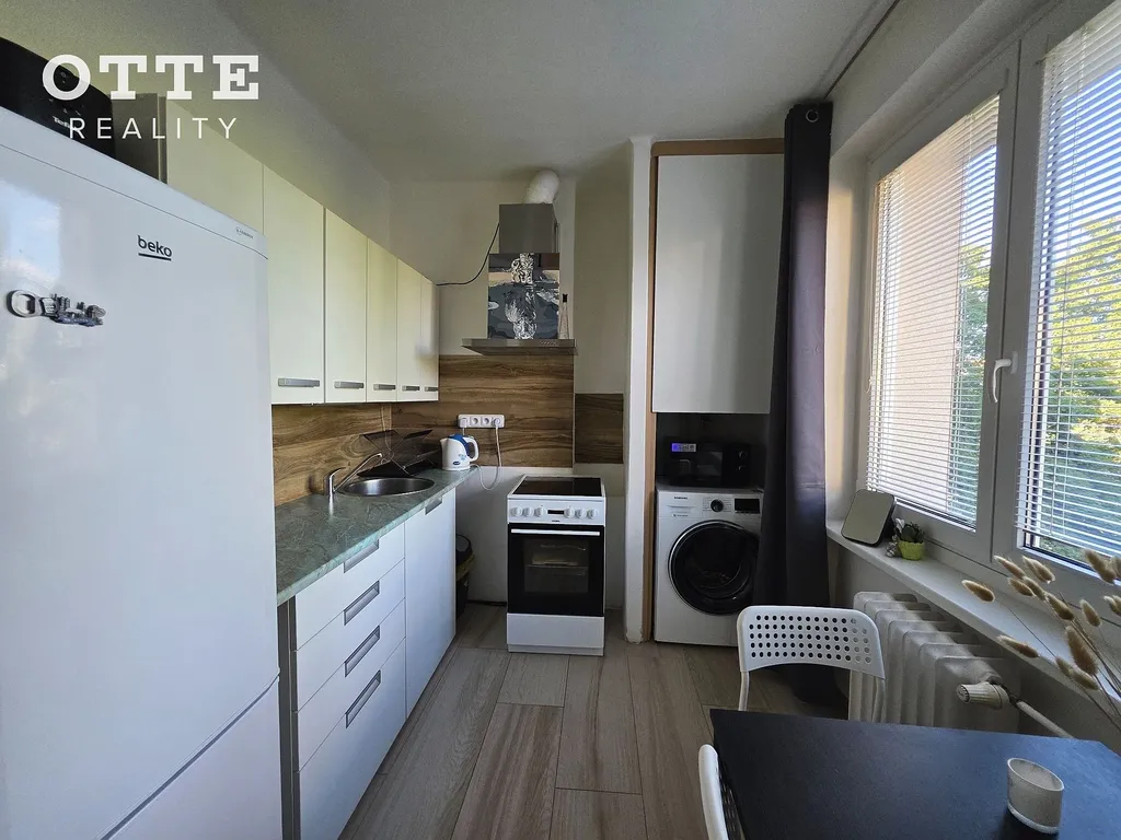 Byt byl v minulosti částečně rekonstruovaný a je možné se okamžitě nastěhovat. Uspořádání bytu je praktické, příčky v bytě a jádro je zděné dutou cihlou. Z modernizované předsíně, kde je šatník, se vstupuje do všech místností zvlášť. Dispozice bytu se skládá z předsíně, kuchyně, obytného pokoje, koupelny a samostatného WC. V roce 2022 byla provedena částečná rekonstrukce zahrnující vestavbu nové koupelny a toalety včetně rozvodů, instalace kuchyňské linky, položení krytin, kompletního nového rozvodu elektroinstalace, instalace obložení a vestavných prvků v bytě.