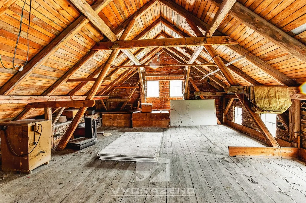 V přízemí je obývací pokoj s kuchyňským koutem, tři pokoje, chodba, koupelna s vanou a WC. Podkrovní prostor s možností rozšíření. Kolna a velká stodola.