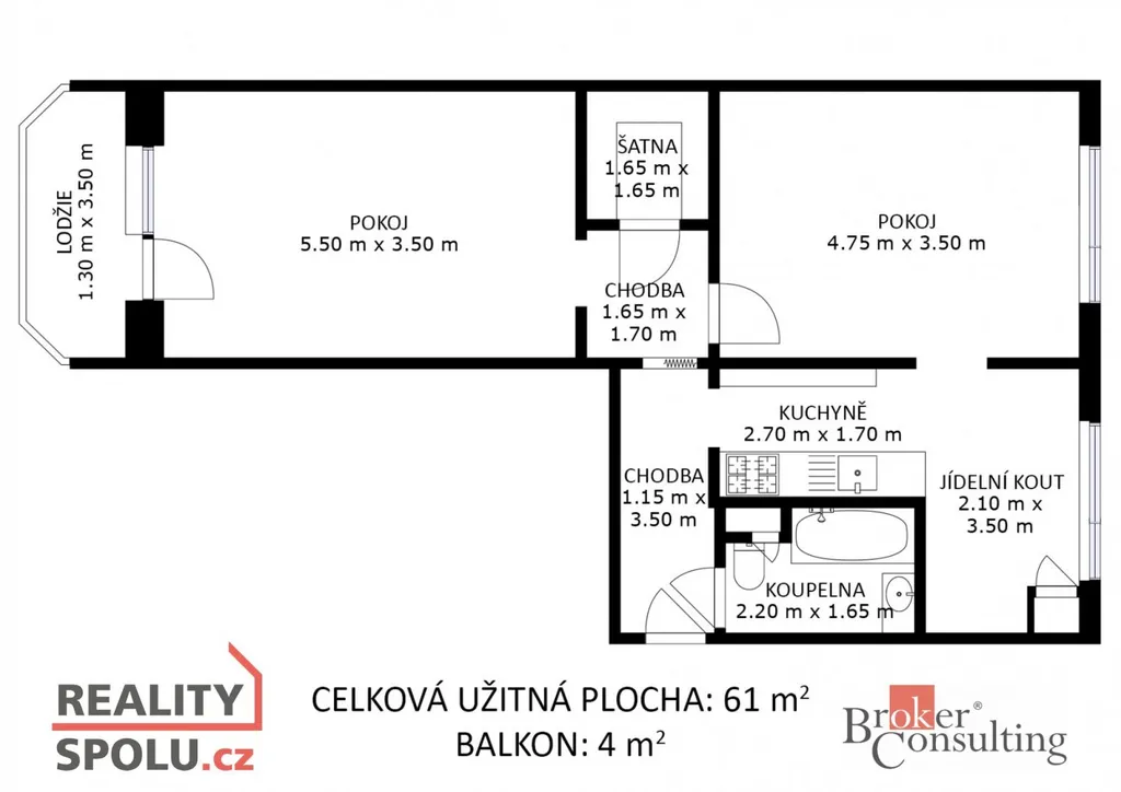 - výměra 61 m² a velmi praktické dispoziční řešení
