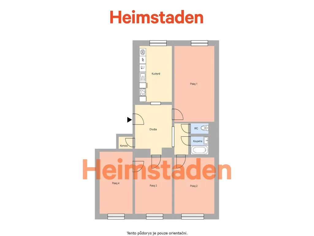 Byt nabízí dva zcela samostatné, neprůchozí pokoje – obývací pokoj a ložnici, což poskytuje dostatek soukromí i klid pro každodenní život. Další dva pokoje jsou průchozí mezi sebou, což vytváří skvělý prostor například pro dětské pokoje nebo kombinaci dětského pokoje a pracovny. Dispozice tak dává mnoho možností, jak si byt přizpůsobit dle svých potřeb.