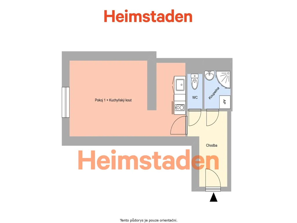 Hlavní obytná místnost je vybavena plovoucí podlahou a nabízí dostatek prostoru pro obývací i spací zónu. Součástí pokoje je také praktický kuchyňský výklenek, kde najdete kuchyňskou linku s elektrickou dvouplotýnkovou varnou deskou. Celek díky tomu působí kompaktně a účelně – ideální řešení pro jednotlivce, studenty či někoho, kdo hledá jednoduché a snadno udržovatelné bydlení.
