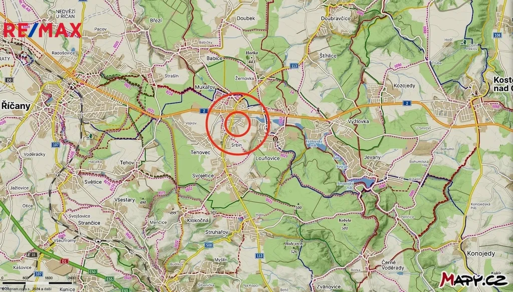 Dopravní dostupnost automobilem: Praha 21 km metro A i C, vlak Říčany 5 km. PID: Autobusová zastávka je jen 800 m u domu, spoje na Prahu jezdí každých 10-30 min. Jedná se o hlavní trasu na Kutnou Horu, BUS jezdí od brzkých ranních hodin do půlnoci včetně nočního spoje.