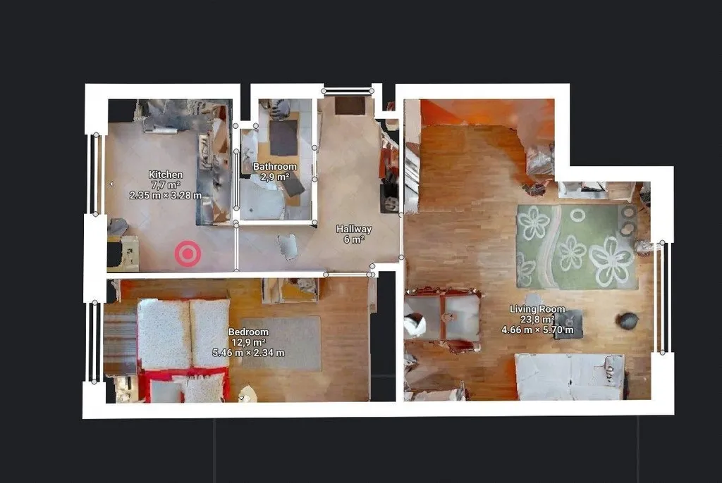 Byt byl v roce 2008 2009 rekonstruovaný kuch. linka, rozvody elektřiny v mědi, voda a odpady v plastu, systém vytápění ústřední plynové (kotel v kuchyni), dřevěná eurookna, podlahy (dřevěná dubová v obýváku, v ložnici plovoucí laminátová, dlažby v kuchyni, koupělně a na chodbě).