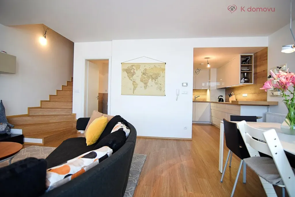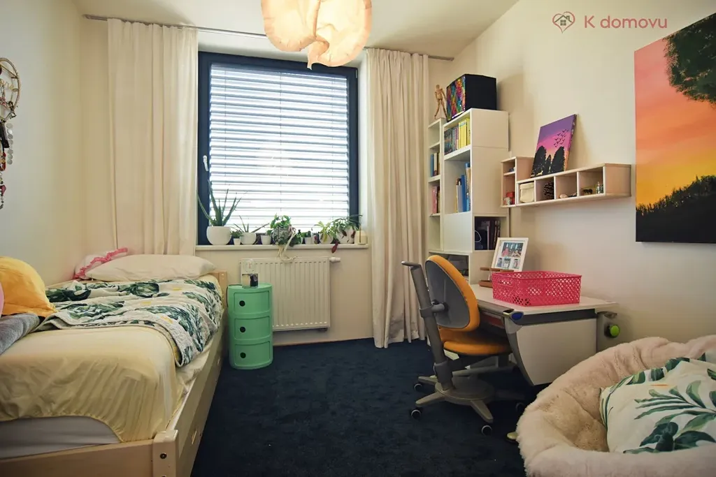 Vybavení: kuchyňská linka (indukční varná deska, horkovzdušná trouba, parní trouba, lednice, myčka (Siemens). Vestavěné skříně v zádveří a vestavěné skříně v ložnici. Náklady na bydlení jsou cca 5000 Kč/měsíc při třech osobách.