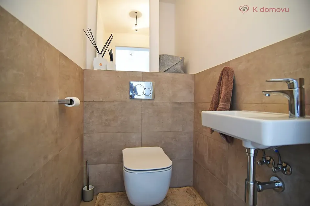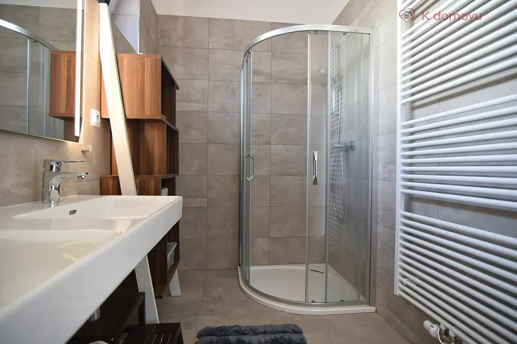 O teplou vodu a vytápění se stará kondenzační plynový kotel. Všechna okna domu lze zastiňovat elektrickými venkovními žaluziemi. Uložení věcí zajistí sestava vestavných skříní umístěných v zádveří a v ložnici. Dále vyžijete prostornou komoru s regály a garáž.