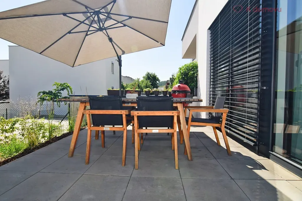 Pronájem nového, řadového rodinného domu s garáží s dispozicí 4+kk o přibližné užitné ploše 160 m2 se zahradou 52 m2 v klidné brněnské části Jundrov.
