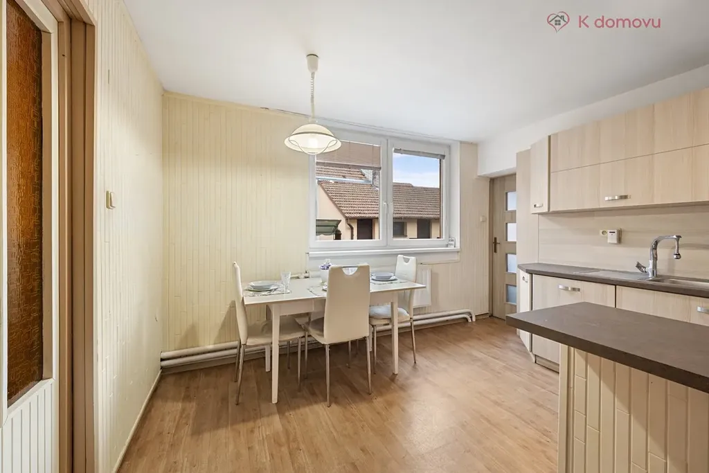 Nabízený RD je přízemní a sestává ze dvou bytových jednotek 1+1 (31m2) a 3+1 (117m2). Byty jsou odděleny průjezdem, který pak vede do vnitrobloku. Bonusem je i možnost zobytnění půdních prostor, které nabízejí další možnou obytnou plochu. Pro svou dispozici je dům vhodný pro rodiny hledající větší prostor nebo bydlení s výminkem, či využití bytu k pronájmu.