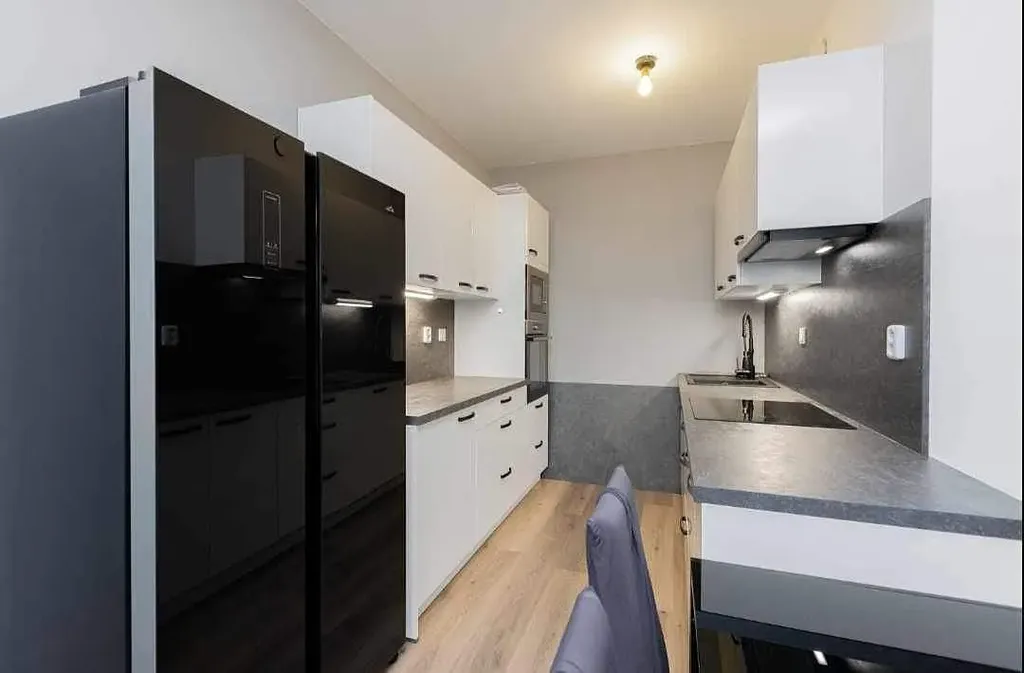 Kvalitní moderní kuchyň včetně vestavěných spotřebičů zn.Gorenje (mikrovlnná trouba, horkovzdušná trouba, myčka, sklokeramická varná deska a digestoř).