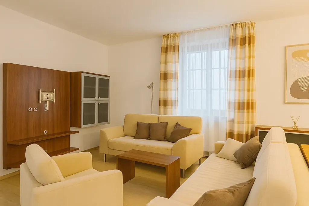 V patře jsou umístěny dvě samostatné kanceláře, z nichž jedna má přímý vstup na terasu. Dále zde najdete koupelnu s oknem, hydromasážní vanou a sprchovým koutem, která poskytuje komfortní zázemí pro personál či hosty. Součástí patra je také galerie využitelná jako menší kancelář, zasedací či relaxační zóna. Z galerie je vstup na terasu s krytým posezením a výhledem na historickou architekturu okolních budov – ideální místo pro neformální pracovní setkání.