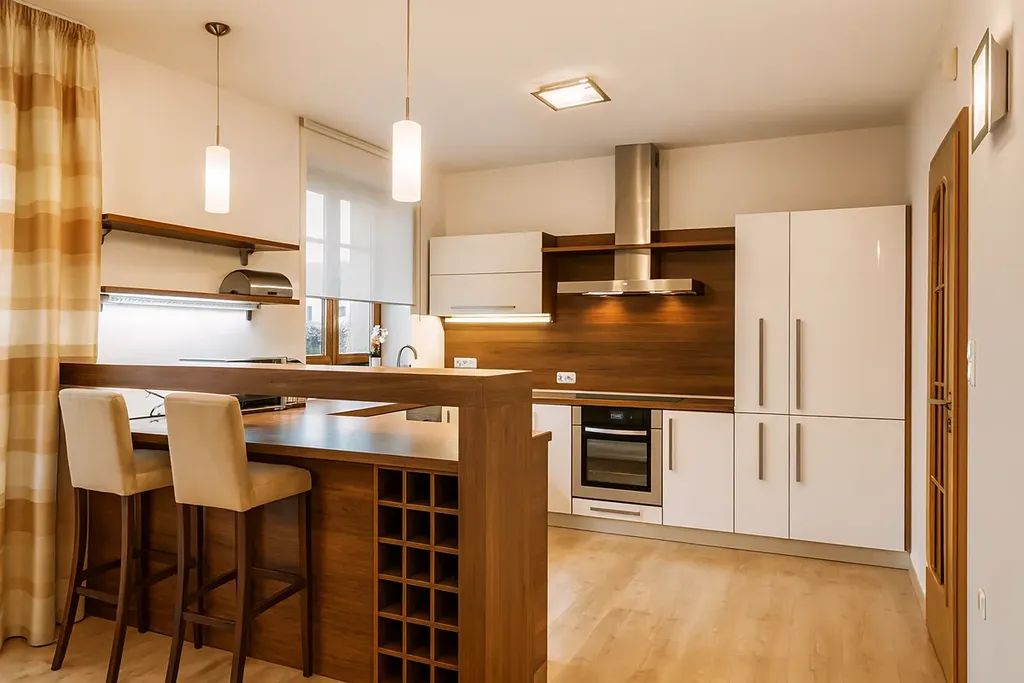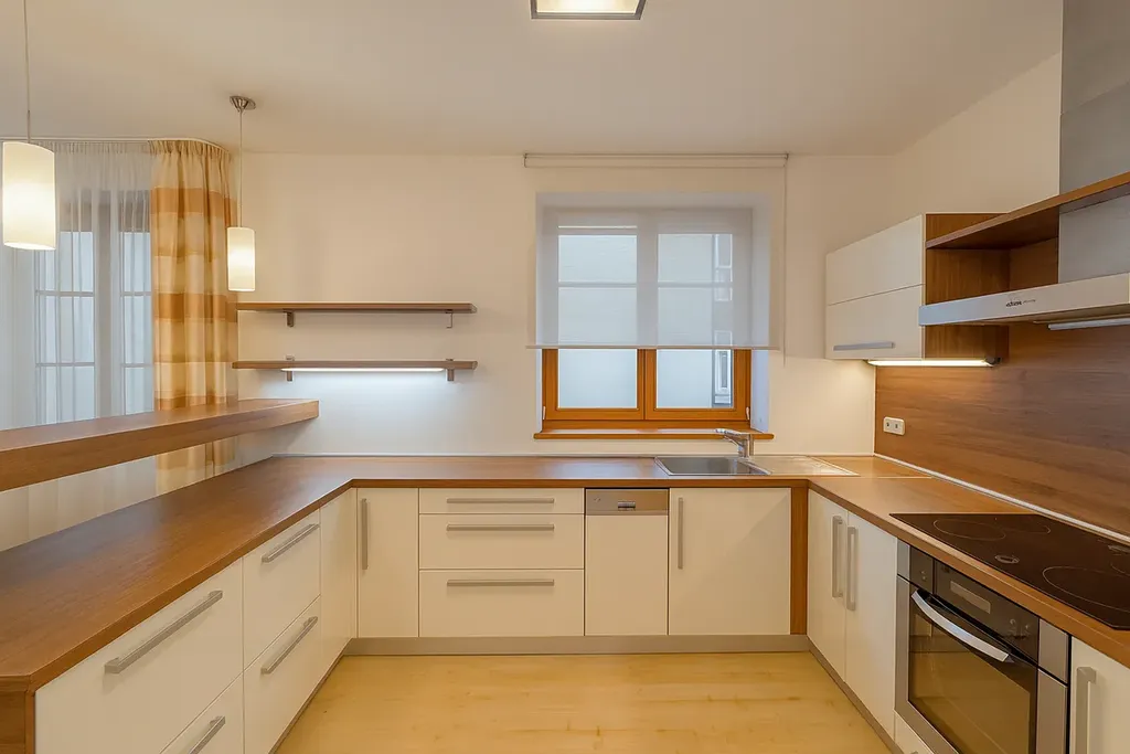 Nabízené kancelářské prostory mají užitnou plochu 121 m², vlastní terasu o velikosti 24 m² a samostatný vstup přímo z upravené zahrady ve vnitrobloku. V přízemí se nachází vstupní recepce či předsálí se zabezpečeným vstupem, šatna či archiv, sociální zázemí se sprchovým koutem a toaletou a technická místnost s pračkou, sušičkou a kotlem. Dominantou této úrovně je velkorysý otevřený prostor vhodný jako týmová kancelář či klientská zóna, navazující na moderní kuchyňský kout vybavený spotřebiči a doplněný o krbová kamna, která interiéru dodávají příjemnou a neformální atmosféru.