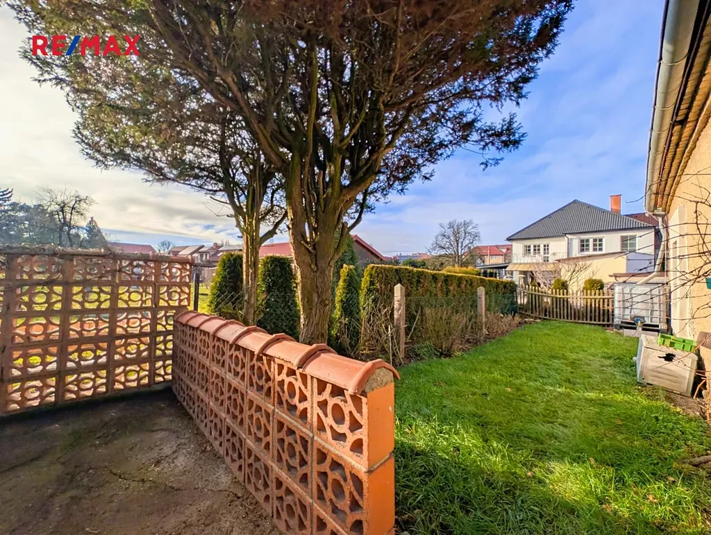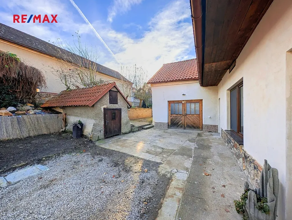 Pozemek o celkové výměře 472 m² je oplocený a částečně terasovitý. Zahrada je orientovaná na jih a díky jabloním nabízí příjemné soukromí. Nádvoří u domu je rovinaté a umožňuje parkování jednoho vozu. Druhé auto lze zaparkovat v garáži (22.4 m² ) a další místo je možné před domem na ulici. Na nádvoří se nachází také podzemní sklípek.