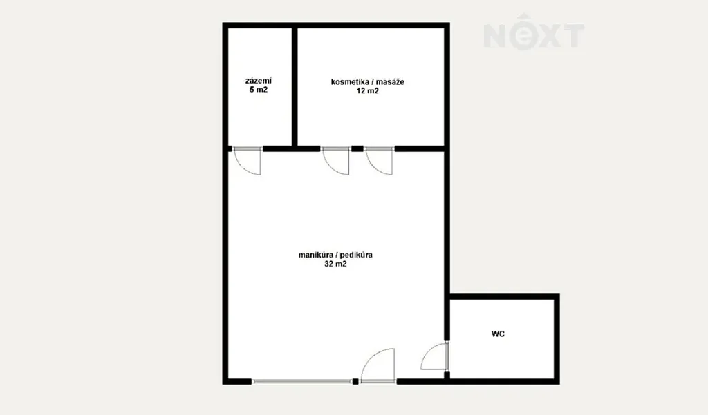 Prostor je plně vybaven nábytkem, který čítá elektrické masážní lůžko, elektrické pedikérské křeslo, a další nábytek, viz foto.