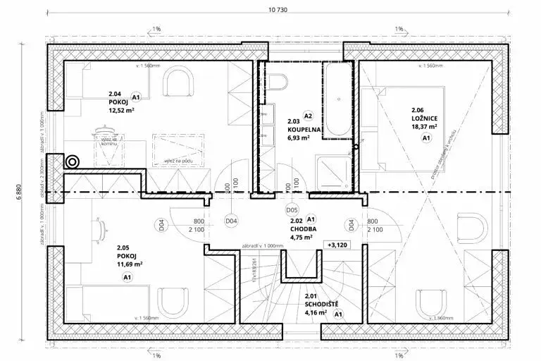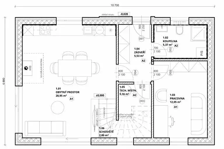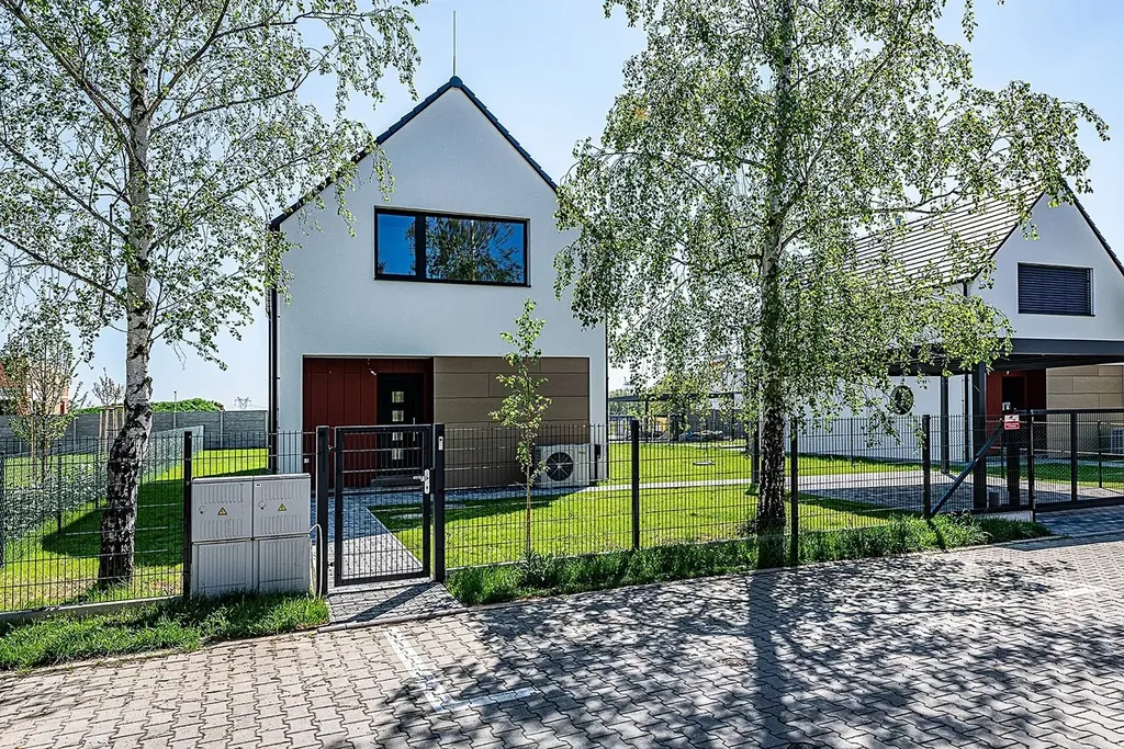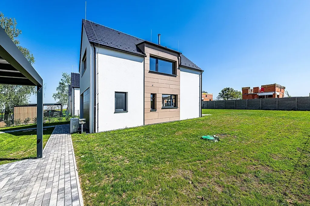 Energeticky úsporný dům (PENB „B“) je vybaven tepelným čerpadlem s podlahovým vytápěním, rekuperací vzduchu, přípravou na krb a přípravou pro solární panely. Dům je o velikosti 5+1 s přístřeškem pro parkování 2 aut.