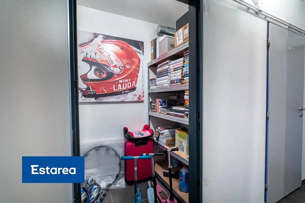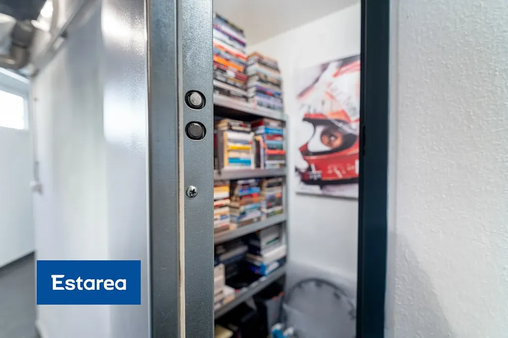 Další úložné prostory se nacházejí ve sklepě s regálovým systémem a bezpečnostními dveřmi.