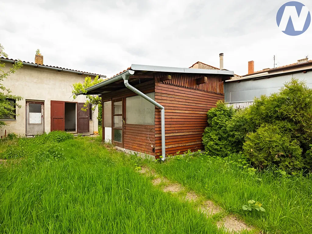 Oplocená zahrada o rozloze 866 m² je rozdělena na několik částí. Před domem se nachází okrasná předzahrádka s dekorativními dřevinami, která vytváří příjemný vstupní prostor. Za domem najdete velkou patrovou garáž s dílnou (sloužila jako autoopravárenská dílna) s přístupem, zahradní domek - kolna aj. Za dílnou se nachází další část zahrady se skleníkem ovocnými stromy a keři, jež poskytují užitkovou i estetickou hodnotu, což ocení zejména milovníci zahradničení či relaxace.