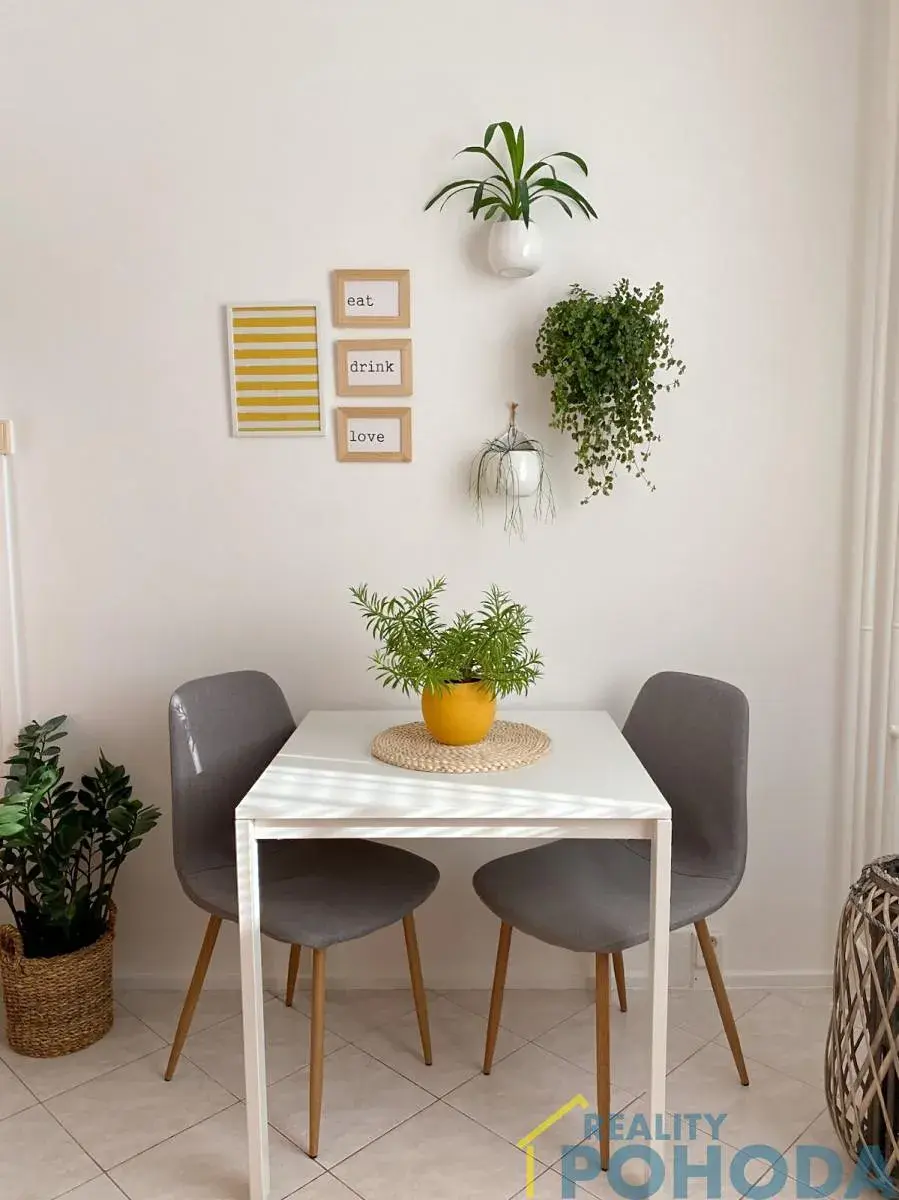 Byt je tvořen z velkého obývacího pokoje a kuchyně, kde je linka na míru včetně vestavěných spotřebičů a také jídelní prostor. Dále vyzděná koupelna s vanou a toaletou. K bytu patří sklep umístěný v suterénu domu a dále společné prostory jako je kolárna a sušárna.