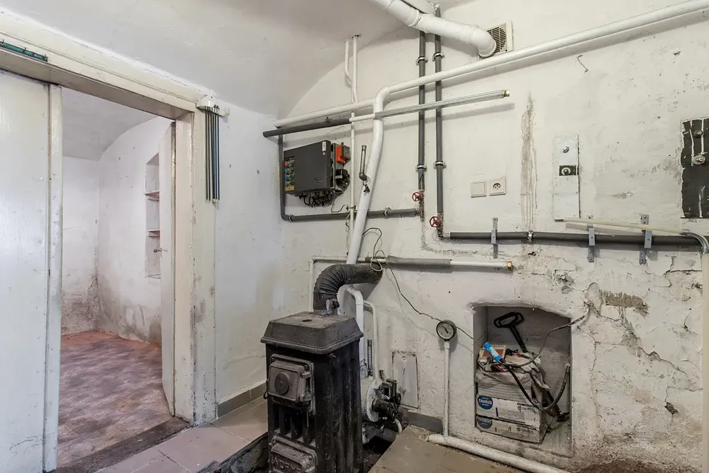 Uvnitř se nachází 3 světlé pokoje, kuchyň, koupelna, WC, sklad a moderní finská sauna. Objekt je v původním stavu a vyžaduje celkovou rekonstrukci, což dává novému majiteli možnost vytvořit si bydlení nebo investici přesně podle svých představ – ať už zachováním historických prvků, nebo jejich propojením s moderním stylem.