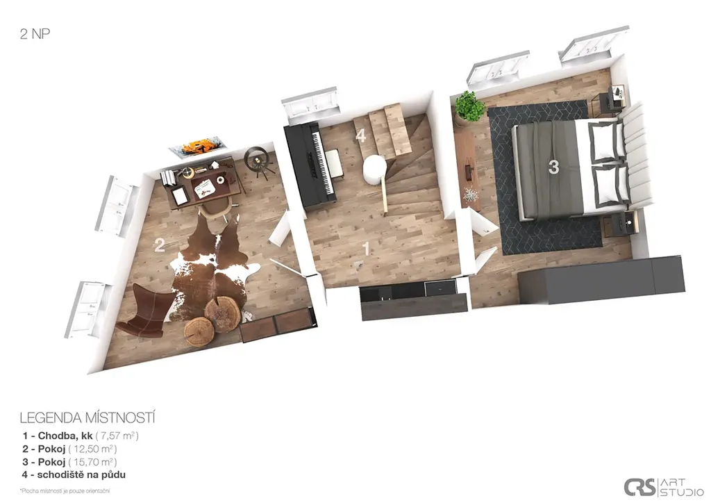 Dům nabízí podlahovou plochu cca 120 m² ve dvou plnohodnotných nadzemních podlažích (užitná plocha 71 m²) + půda s možností vestavby.