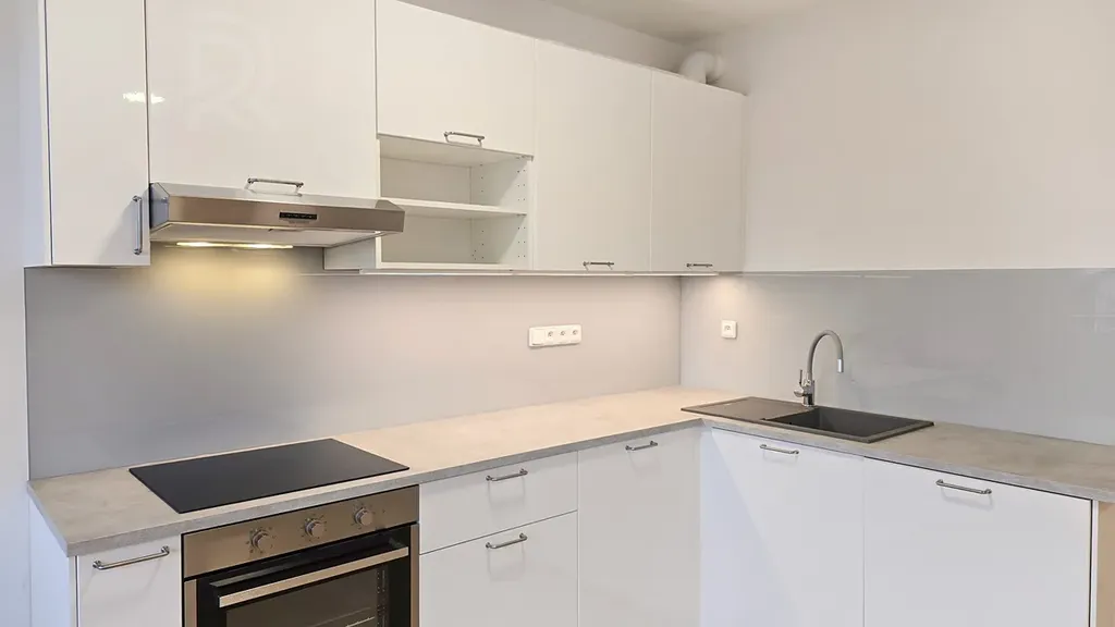 - Obývací pokoj s novou kuchyňskou linkou včetně vestavěné myčky nádobí