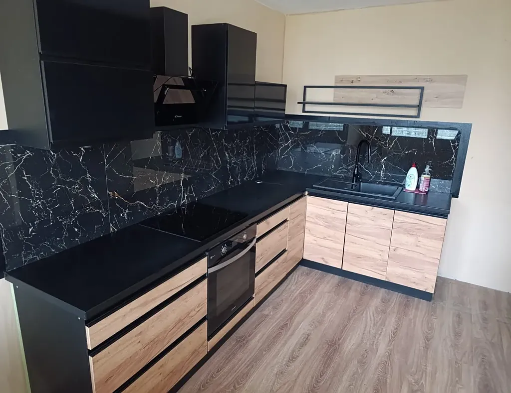 Byt sestává z prostorné vstupní chodby, obývacího pokoje s kuchyní (kuchyňská linka se sklokeramickou varnou deskou, vestavěnou troubou a digestoří), dvou pokojů, koupelny a WC. Z obývacího pokoje vstup na lodžii. K bytu náleží skladová komora na patře.
