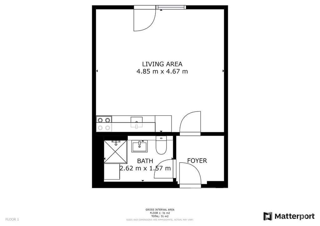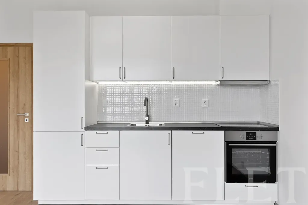 Kuchyně s obývací částí je díky velkému francouzskému oknu krásně prosvětlená, což prostoru dodává vzdušnost a příjemnou atmosféru po celý den. Moderní kuchyňská linka nabízí dostatek úložných prostor a poskytuje komfort pro každodenní vaření. V prostorné koupelně najdete sprchový kout, toaletu a pračku.