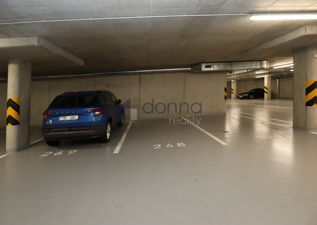 Součástí nájmu je i garážové stání v suterénu budovy.