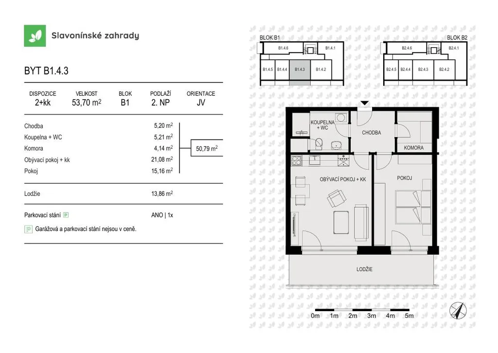 Nabízíme prostorný byt s označením B1.4.3 o dispozici 2+kk, podlahové ploše 53,68 m2 v 4. NP, s balkónem 13,6 m2 ideální pro páry nebo jako investiční bydlení.